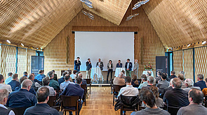 Dass der Aargauer Wald nicht nur als Natur- und Erholungsraum eine grosse Bedeutung hat, sondern auch in Bezug auf die Holzproduktion, zeigte Ralf Bucher, Bauer, Waldbesitzer und Vizepräsident des Aargauer Grossrates, in seiner Ansprache im neuen Saal des «CASPAR Drei-Häuser-Hotels» in Muri - einem Raum, der nicht zuletzt wegen seines raffiniert umgesetzten, über 16 Meter hohen und aus 20’000 Holzstäben bestehenden Faltdaches beim Prix Lignum 2024 in der Kategorie Schreinerarbeiten mit Gold ausgezeichnet wurde. Denn der Aargauer Wald ist drittgrösster Holzproduzent des Landes und hat mit einem Erntevolumen von 412’000 Festmetern pro Jahr die Nachhaltigkeitsgrenze erreicht. Es gelang zudem - auch dank dem persönlichen Einsatz von Ralf Bucher – die Holzförderung bei kantonalen Bauten im kantonalen Waldgesetz festzuschreiben. Die Umsetzung stösst aber an Grenzen, denn der Laubholzanteil im Wald nimmt weiter zu, dementsprechend wird immer mehr Holz verfeuert statt verbaut.